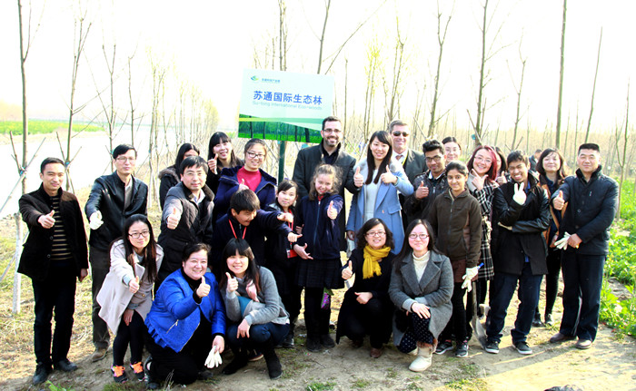 近年来,我办每年都组织在通外国友人义务植树,位于苏通科技园区内的国际生态林已经郁郁葱葱,去年中外友人携手种下的苗木如今长出了新芽。今年外国友人的植树热情依然不减,大家挥锹挖土、扶苗浇水,互相配合,栽下了近百棵竹柳树苗,并挂上了写着自己名字的标牌。来自国际学校的小朋友Makaylyn忙的不亦乐乎,开心地对同学说:“我的小树快快长大吧,给我们带来更多的氧气。”